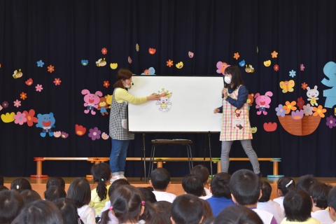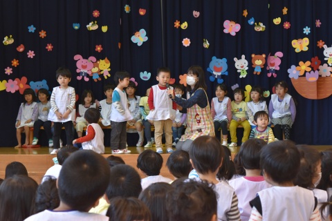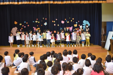 今月の誕生会は、みんなで手遊びをしたり、パネルシアターを観たりして楽しみました。