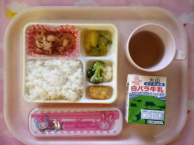 豚肉と大豆★栄養満点 ! ★ごはん ◆●ポークビーンズ ●野菜のカレー煮 ◆●ツナサラダ ★フライドポテト ※あたたかいご飯・カレーはおかわり自由です。 ※牛乳は希望者のみです。 ★熱や力になるもの ◆血や肉になるもの ●体の調子を整えるもの ツイート