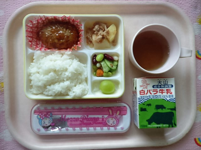 ホクホクじゃが芋★ツナと一緒に! ★ごはん ◆●煮込みハンバーグ ★◆●ツナじゃが ●ビーンズサラダ ●ぶどう ※あたたかいご飯・カレーはおかわり自由です。 ※牛乳は希望者のみです。 ★熱や力になるもの ◆血や肉になるもの ●体の調子を整えるもの ツイート
