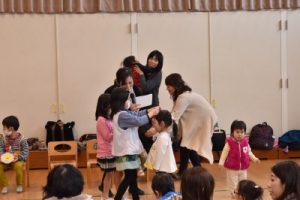 2月、3月生まれの誕生会をしました!5人のお友だちを「たんたんたん たんじょうび~♪〇〇ちゃんの、〇〇ちゃんのたんじょうび~♪」と、みんなで一緒に歌って、お祝いしましたよ!