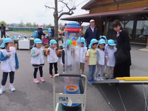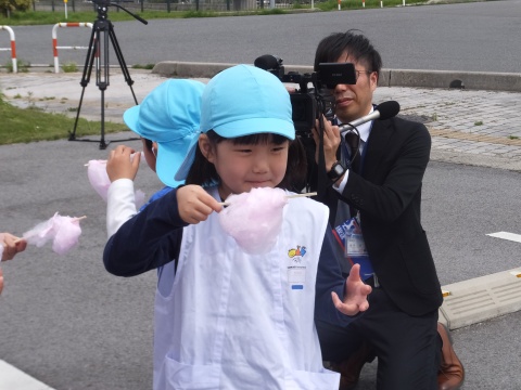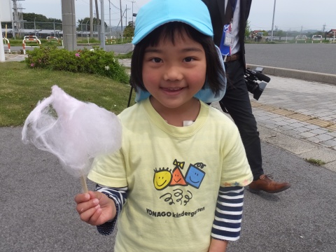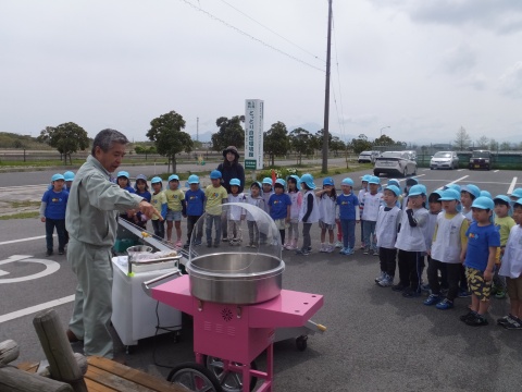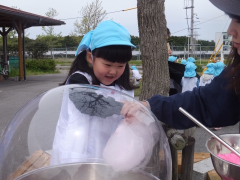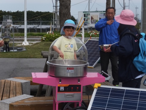 そして、実際に太陽光パネルを利用して作られた電気を使って綿菓子機を動かして、綿菓子を作ってもらい、みんなで食べました。