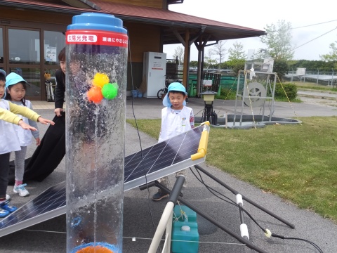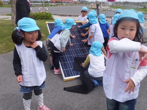 太陽の熱を肌で感じたり、パネルから電気が作られるというしくみを見て、感心していたようです。