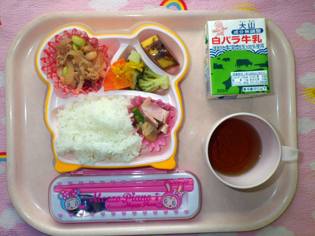 今が旬!アスパラのソテー☆(2017/05/10) ★ ごはん ◆●牛と豆のトマト煮 ◆●アスパラソテー ● フレンチサラダ ● バナナ ※あたたかいご飯はおかわり自由です。 ※牛乳は希望者のみです。 ★熱や力になるもの ◆血や肉になるもの ●体の調子を整えるもの ツイート