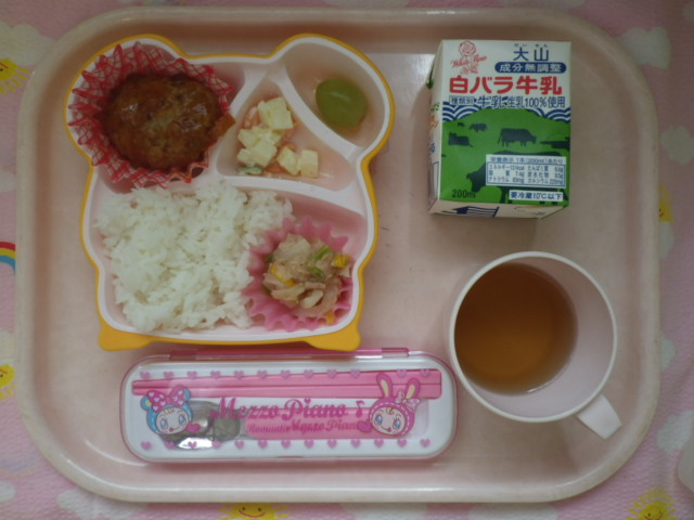 みんな大好き★煮込みハンバーグ(2017/6/7) ★ ごはん ◆●煮込みハンバーグ ◆●キャベツツナ炒め ★●ポテトサラダ ★ ぶどう ※あたたかいご飯はおかわり自由です。 ※牛乳は希望者のみです。 ★熱や力になるもの ◆血や肉になるもの ●体の調子を整えるもの ツイート