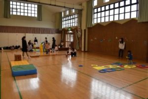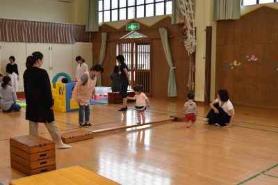 だんだんと暑い日が増えてきましたね!こんな時期には、「水を使ってあそぼう!」を計画していたのですが、当日に限って、朝からあいにくの雨模様…(◞‸◟)残念ながら水を使って遊ぶことは出来ませんでしたが、その代わりに遊戯室で、一本橋を渡ったり、とび箱に上ったり、降りたりしたり、トランポリンマットでピョンピョン飛び跳ねたりして、体を動かして遊びました!