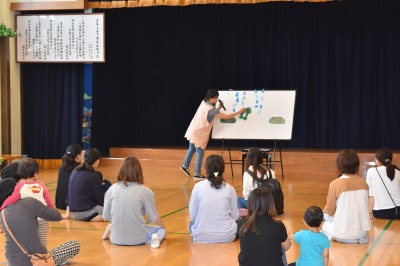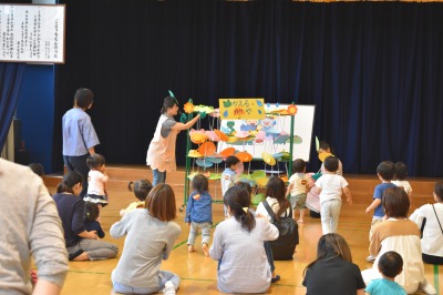 すると、みんなの楽しそうな歌声に、パネルシアターのかえるくんが遊びに来ました!