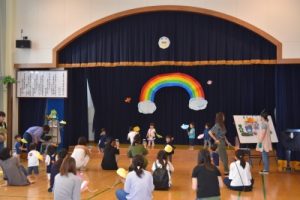 みんなの元気パワーに誘われて、大きな虹も出てきて、みんなにっこにこでした!