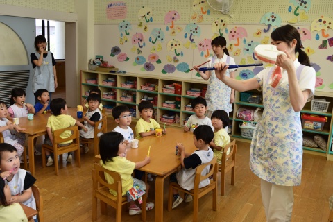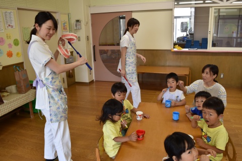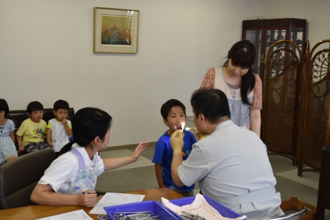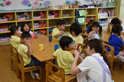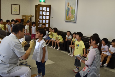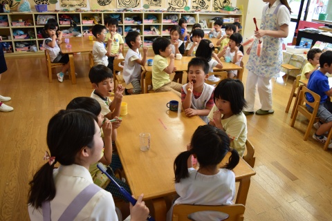 歯科検診と歯磨き指導(2017/06/15) 今日は、園歯科医の宮地先生に歯科検診を受けました。検診を待つ間、みやじ歯科の衛生士さん達に歯磨き指導を受けました。 紙芝居を見て歯磨きの大切さを勉強したり、模型を使って歯磨きの仕方を教わったりしました。 みんな真剣に話を聞いていましたよ。 ツイート