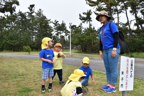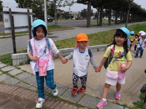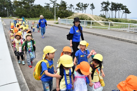 全園児遠足(2017/05/11) 全園児で弓ヶ浜公園まで遠足に行きました。 天気も良く、とても気持ちの良い日でした。 年長組の子が年少組やひよこ組の子どもたちと手をつなぎ、歩いて出発する姿は、とてもほほえましかっ たです。弓ヶ浜公園の芝生の広場で遊んだり、道端に咲く花を見たりして楽しみました。 ツイート