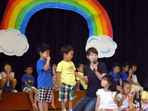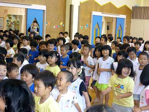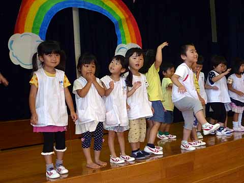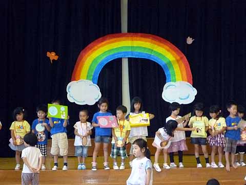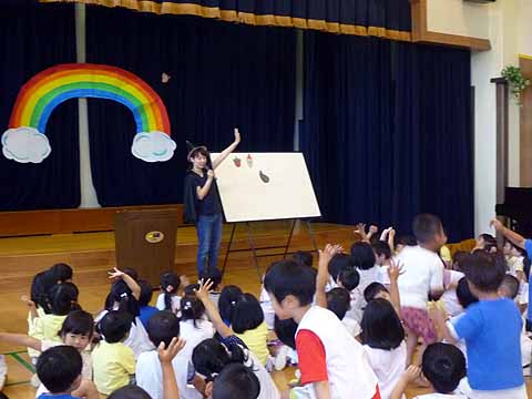 今月の誕生会は、みんなで「ブラブラせいじん」をして踊ったり、先生たちの「クイズ これなんでしょう?」を観たりしてみんなで御祝いをしました。