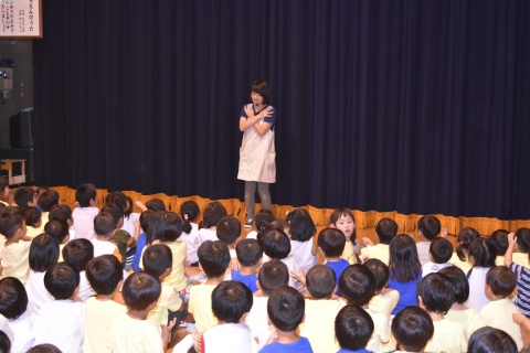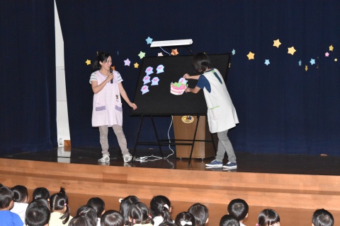 今月の誕生会は、みんなで歌をうたったり、ブラックパネルシアターを観たりして楽しみましたよ。