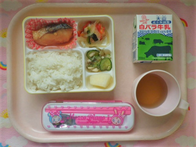 鳥取県といえばやっぱり梨だね☆(2017/10/2) ★ ごはん ◆●ポークビーンズ ◆●白菜ベーコン煮 ● ごぼうサラダ ★ フライドポテト ※あたたかいご飯はおかわり自由です。 ※牛乳は希望者のみです。 ★熱や力になるもの ◆血や肉になるもの ●体の調子を整えるもの ツイート