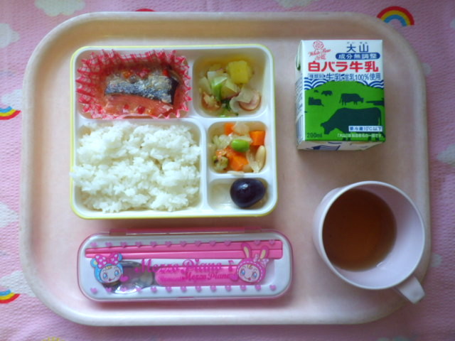カラフルお豆のコロコロサラダ♪(2017/10/11) ★ ごはん ◆●鮭の豆乳ソース ★◆●コンソメ煮 ● ビーンズサラダ ● ぶどう ※あたたかいご飯はおかわり自由です。 ※牛乳は希望者のみです。 ★熱や力になるもの ◆血や肉になるもの ●体の調子を整えるもの ツイート