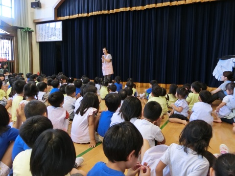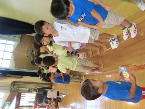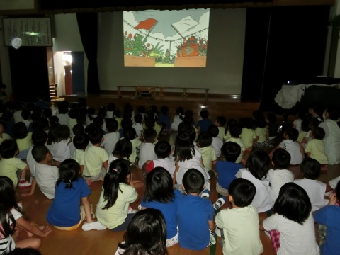 今月の誕生会は、先生と手遊びをしたり、スライドを観たりして御祝いをしましたよ。