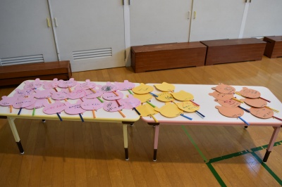 いろいろな動物の形をしたかわいい「うちわ」です。あとでどんな事をするのかお楽しみ。