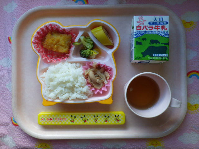 カレー味で食欲アップ(2017/10/20) ★ ごはん ◆ 魚のカレー揚げ ◆●キャベツツナ炒め ◆●ブロッコリーサラダ ● バナナ ※あたたかいご飯はおかわり自由です。 ※牛乳は希望者のみです。 ★熱や力になるもの ◆血や肉になるもの ●体の調子を整えるもの ツイート