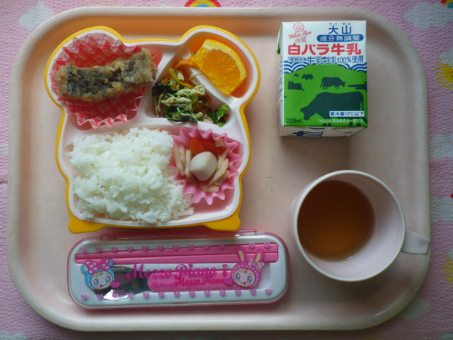 ゆず香る★さっぱり和え物☆(2017/10/03) ★ ごはん ◆●アジのみぞれ煮 ◆●高野と野菜の含め煮 ● ゆず和え ● オレンジ ※あたたかいご飯はおかわり自由です。 ※牛乳は希望者のみです。 ★熱や力になるもの ◆血や肉になるもの ●体の調子を整えるもの ツイート
