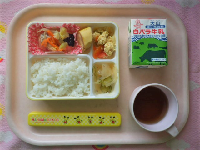 北海道料理☆ちゃんちゃん焼き(2017/11/13) ★ ごはん ◆●鮭のちゃんちゃん焼き ◆●炒り卵 ◆●大根サラダ ● バナナ ※あたたかいご飯はおかわり自由です。 ※牛乳は希望者のみです。 ★熱や力になるもの ◆血や肉になるもの ●体の調子を整えるもの ツイート