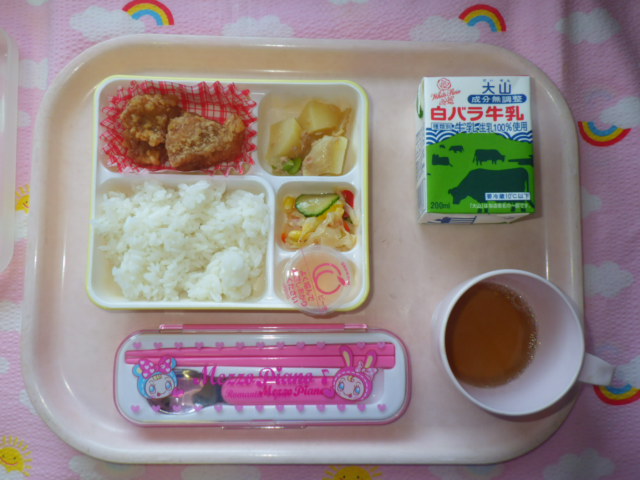 みんな大好き★鶏のから揚げ(2017/11/17) ★ ごはん ◆ 鶏のから揚げ ★◆●ツナじゃが ● コールスローサラダ ★ ゼリー ※あたたかいご飯はおかわり自由です。 ※牛乳は希望者のみです。 ★熱や力になるもの ◆血 や肉になるもの ●体の調子を整えるもの ツイート