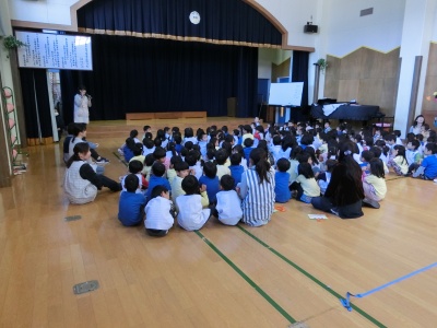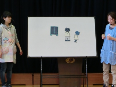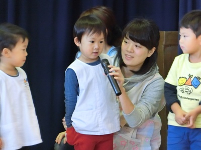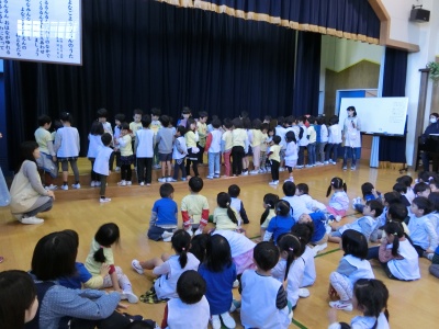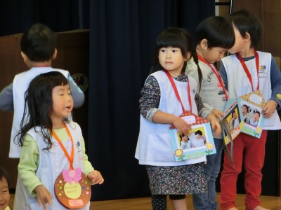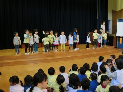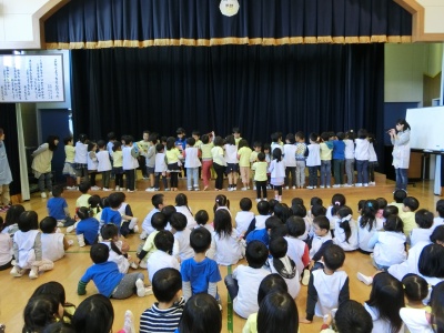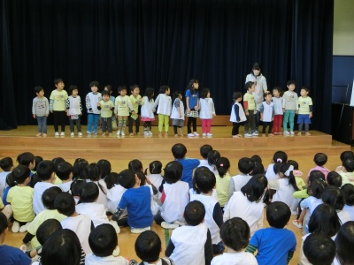 今月の誕生会は、みんなでパネルシアターを観たり、石原先生と手遊びをして遊んだりしましたよ。