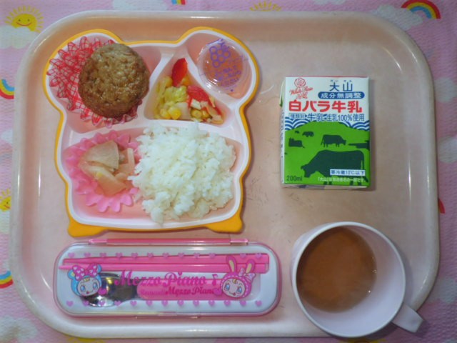 冬が旬!大根とベーコンのソテー♪(2017/12/15) ★ ごはん ◆ 照り焼きハンバーグ ◆●大根とベーコンのソテー ● コールスローサラダ ★ ゼリー ※あたたかいご飯はおかわり自由です。 ※牛乳は希望者のみです。 ★熱や力になるもの ◆血 や肉になるもの ●体の調子を整えるもの ツイート