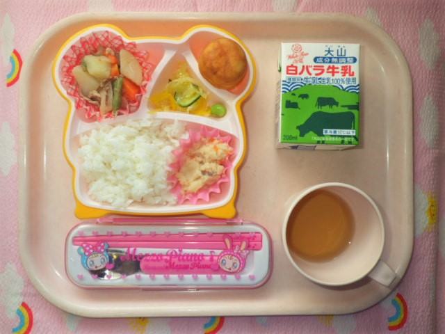 おふくろの味☆肉じゃがだよ♪(2018/2/23) ★ ごはん ★◆●肉じゃが ◆●卯の花 ● グリーンサラダ ★ プチケーキ ※あたたかいご飯はおかわり自由です。 ※牛乳は希望者のみです。 ★熱や力になるもの ◆血や肉になるもの ●体の調子を整えるもの ツイート