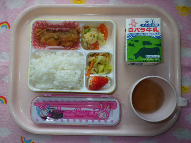 旬の大根をおろしポン酢でどうぞ♪(2018/2/26) ★ ごはん ◆●煮込みハンバーグ ● コンソメ煮 ★●ポテトサラダ ★ 黄桃缶 ※あたたかいご飯はおかわり自由です。 ※牛乳は希望者のみです。 ★熱や力になるもの ◆血や肉になるもの ●体の調子を整えるもの ツイート