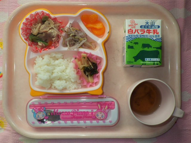 今日の給食(2018/4/27) ★ ごはん ★◆●肉じゃが ● 若竹煮 ● ゆかり和え ★ みかん缶 ※あたたかいご飯はおかわり自由です。 ※牛乳は年長・年中希望者のみです。 ★熱や力になるもの ◆血や肉になるもの ●体の調子を整えるもの ツイート