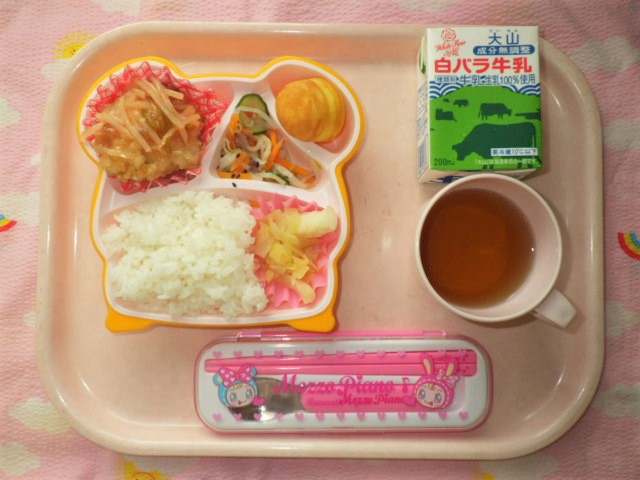 今日の給食(2018/5/2) ★ ごはん ◆●タラの甘酢あんかけ ◆●シーフードソテー ● ナムル ★ プチケーキ ※あたたかいご飯はおかわり自由です。 ※牛乳は年長・年中希望者のみです。 ★熱や力になるもの ◆血や肉になるもの ●体の調子を整えるもの ツイート