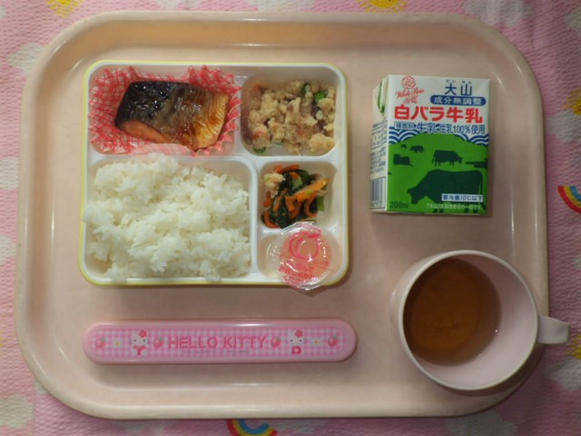 今日の給食(2018/5/7) ★ ごはん ◆ サバの蒲焼風 ◆●卯の花 ● 青菜の胡麻和え ★ ゼリー ※あたたかいご飯はおかわり自由です。 ※牛乳は年長・年中希望者のみです。 ★熱や力になるもの ◆血や肉になるもの ●体の調子を整えるもの ツイート