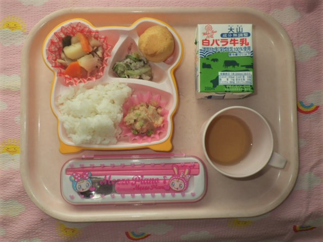 今日の給食(2018/6/15) ★ ごはん ★◆●肉じゃが ◆●卯の花 ● ゆかり和え ★ シュークリーム ※あたたかいご飯はおかわり自由です。 ※牛乳は年長・年中希望者のみです。 ★熱や力になるもの ◆血や肉になるもの ●体の調子を整えるもの ツイート