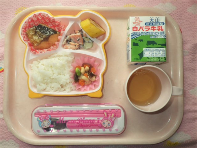 今日の給食(2018/6/29) ★ ごはん ◆ サバのカレー煮 ◆●五目煮豆 ◆●れんこんサラダ ● バナナ ※あたたかいご飯はおかわり自由です。 ※牛乳は年長・年中希望者のみです。 ★熱や力になるもの ◆血や肉になるもの ●体の調子を整えるもの ツイート