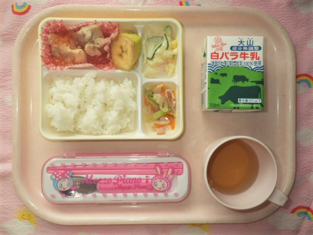夏が旬!リコピンたっぷりのトマト(2018/7/11) ★ ごはん ◆●チキントマトソース ◆●アスパラソテー ● コールスローサラダ ● バナナ ※あたたかいご飯はおかわり自由です。 ※牛乳は年長・年中希望者のみです。 ★熱や力になるもの ◆血や肉になるもの ●体の調子を整えるもの ツイート