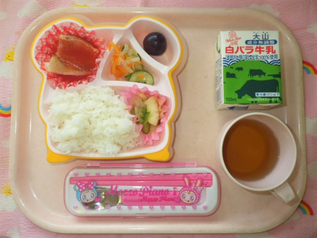 今日は中華のお弁当だよ!(2018/9/12) ★ ごはん ◆ 赤魚のチリソース ◆●シーフードソテー ● ナムル ● ぶどう ※あたたかいご飯はおかわり自由です。 ※牛乳は年長・年中希望者のみです。 ★熱や力になるもの ◆血や肉になるもの ●体の調子を整えるもの ツイート