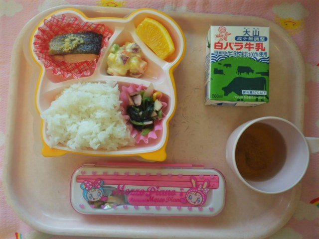 秋の味覚★さつま芋サラダ(2018/9/19) ★ ごはん ◆ 鮭のチーズ焼き ★●ほうれん草ソテー ★●さつま芋サラダ ● オレンジ ※あたたかいご飯はおかわり自由です。 ※牛乳は年長・年中希望者のみです。 ★熱や力になるもの ◆血や肉になるもの ●体の調子を整えるもの ツイート