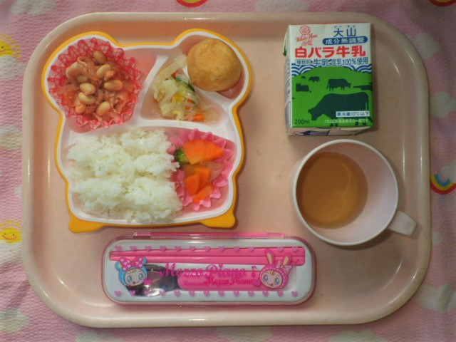 豚肉×大豆★栄養満点だ♪(2018/10/19) ★ ごはん ◆●ポークビーンズ ★●コンソメ煮 ● コールスローサラダ ★ シュークリーム ※あたたかいご飯はおかわり自由です。 ※牛乳は年長・年中希望者のみです。 ★熱や力になるもの ◆血や肉になるもの ●体の調子を整えるもの ツイート