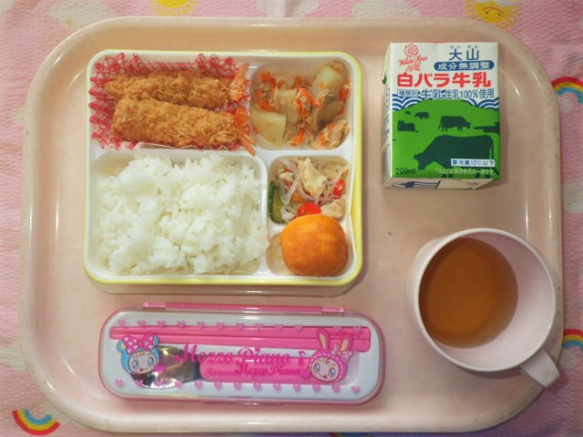みんな大好き★エビフライ♪(2018年11月26日) ★ ごはん ◆ エビフライ ★◆●ツナじゃが ● 春雨サラダ ★ プチケーキ ※牛乳は年長・年中希望者のみです。 ★熱や力になるもの ◆血や肉になるもの ●体の調子を整えるもの ツイート