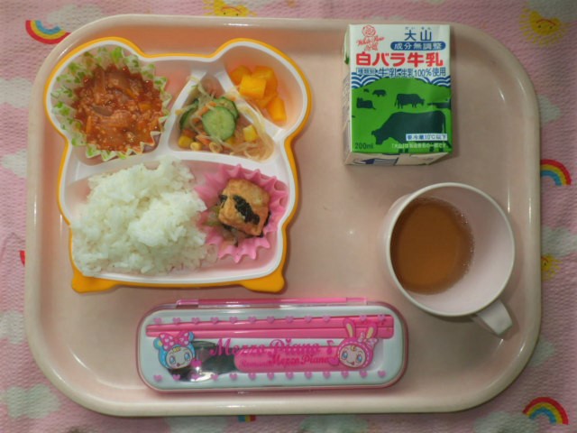 マーボー野菜は中華料理の一つです♪(2018年12月3日) ★ ごはん ◆●マーボー野菜 ◆●厚揚げと青菜ソテー ● 春雨サラダ ★ 黄桃缶 ※あたたかいご飯はおかわり自由です。 ※牛乳は年長・年中希望者のみです。 ★熱や力になるもの ◆血や肉になるもの ●体の調子を整えるもの ツイート