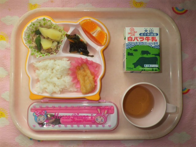 おふくろの味☆肉じゃがだよ★(2018年12月5日) ★ ごはん ★◆●肉じゃが ◆ ちくわの天ぷら ◆●酢の物 ● みかん ※あたたかいご飯はおかわり自由です。 ※牛乳は年長・年中希望者のみです。 ★熱や力になるもの ◆血や肉になるもの ●体の調子を整えるもの ツイート