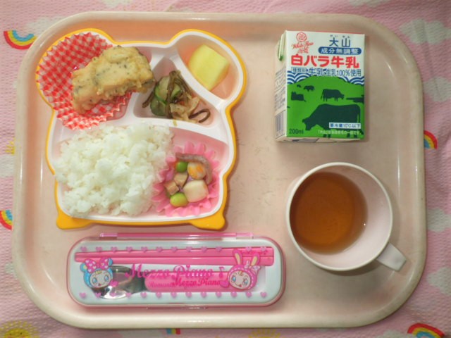 冬が旬のお野菜♪大根の塩昆布和え☆(2018年12月7日) ★ ごはん ◆ 鮭のゆかり天ぷら ★◆●筑前煮 ◆●大根の塩昆布和え ● りんご ※あたたかいご飯はおかわり自由です。 ※牛乳は年長・年中希望者のみです。 ★熱や力になるもの ◆血や肉になるもの ●体の調子を整えるもの ツイート