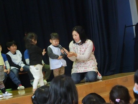今月の誕生会は、みんなでパネルシアターを観て楽しみました。