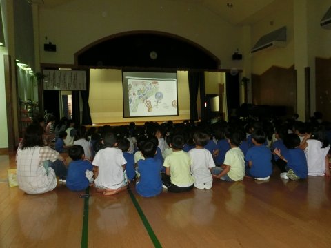 今月の誕生会は、みんなでスライドを観て楽しみました。