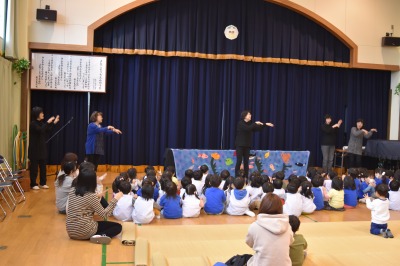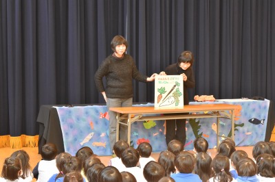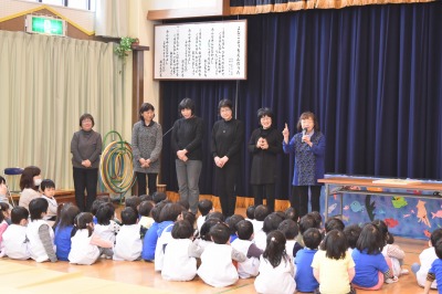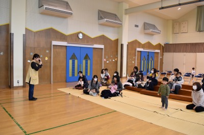 今年も1月のちびっこひろばは「火曜の会」の皆さんをお招きして、楽しいお話をたくさんしていただきました。10組の親子のみなさんが観に来られ、在園児と一緒に心温まるひと時を過ごしました♡