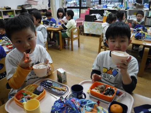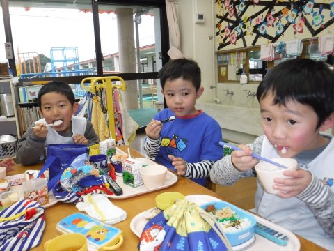 年長組の子どもたちが七草粥を食べました。