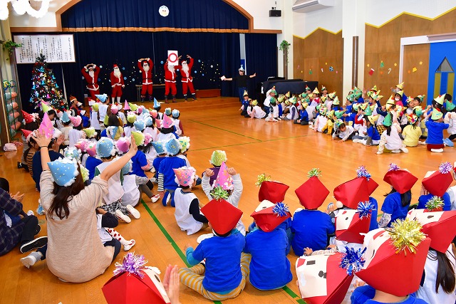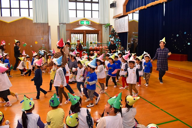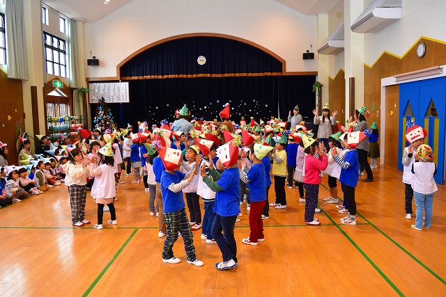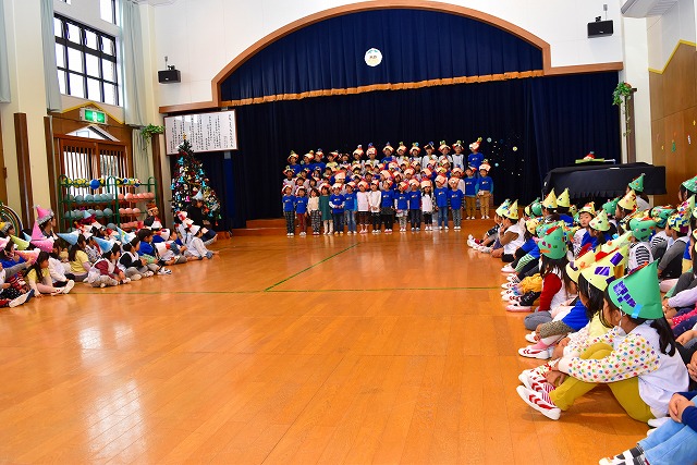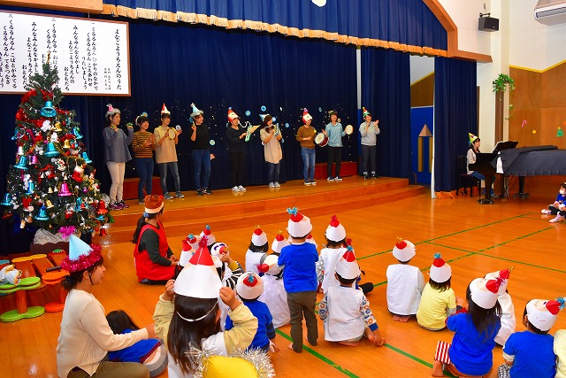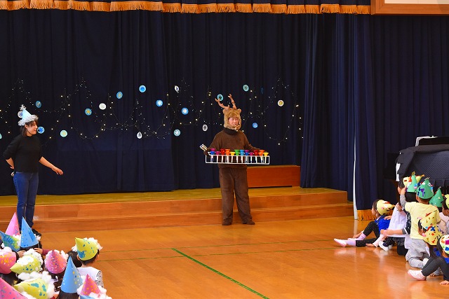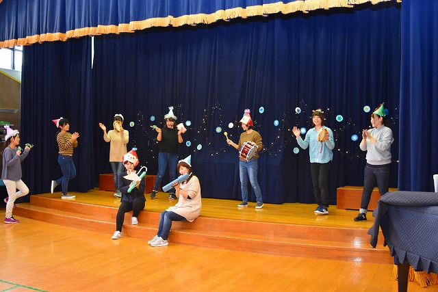 年長組の子どもたちによる歌から始まり、先生たちの演奏会を聴いたり、みんなでダンスをしたり、とっても楽しみました。