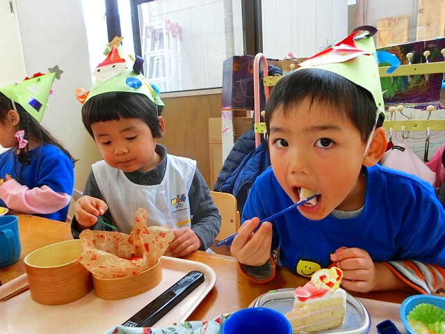 弁当の時間には、みんなでおいしいケーキも食べ、楽しい一日を過ごしました。