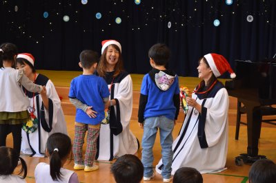 みんながよく知っている曲を一緒に歌ったり、クリスマスの歌を聴いたりしました。