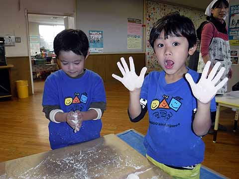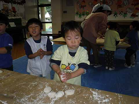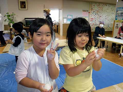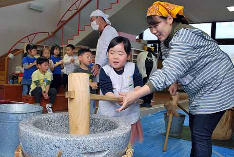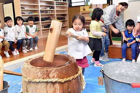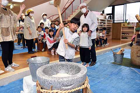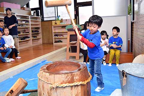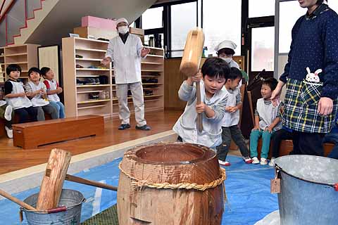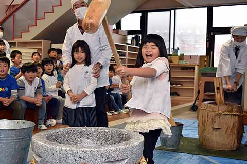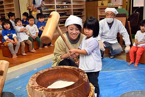お父さん、お母さん、おじいちゃん、おばあちゃんたくさんの方に手伝っていただき、楽しい餅つきができました。