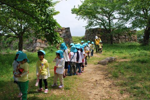 城山遠足(年長)(2013/05/16) 年長組の子どもたちが、城山遠足に行きました。 城山に登るのは初めての子もおり、頂上に登ってからの景色に驚いていた様子でした。 あいにくの天気で大山の様子は見ることができませんでしたが、頂上から見る米子市の風景に子どもたちは、いろいろな事を思っていたようです。 城山から降りた後は、湊山公園横の中海を見ながらおにぎり弁当を食べて、1日を楽しみました。 ツイート