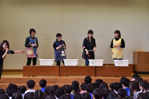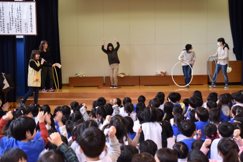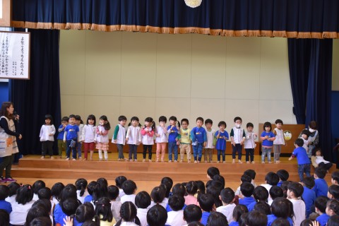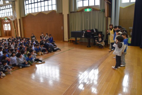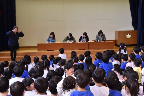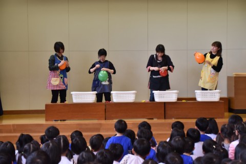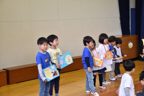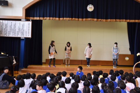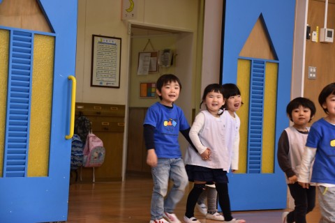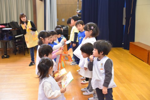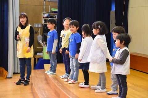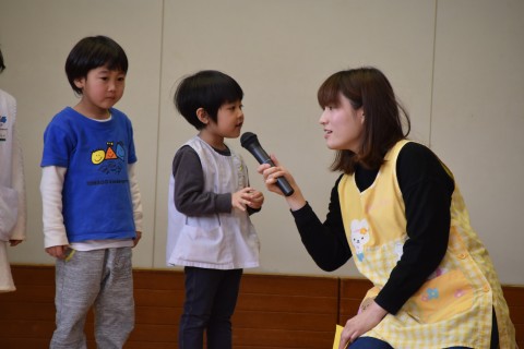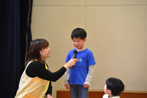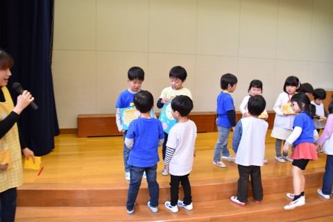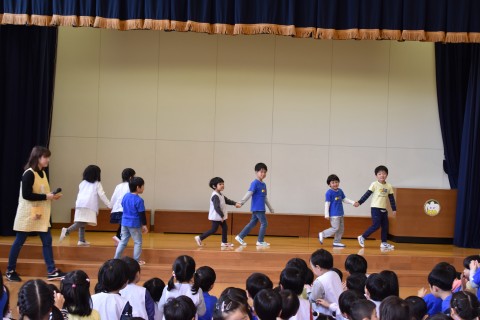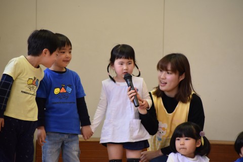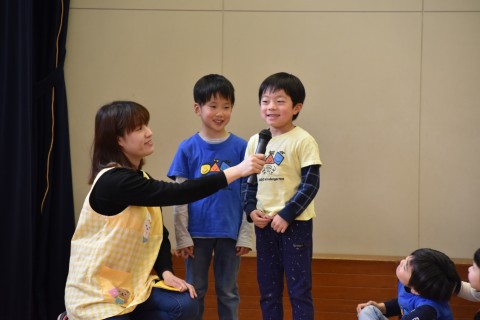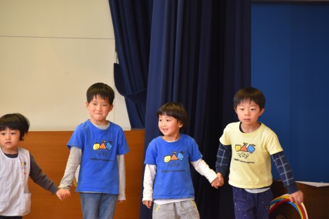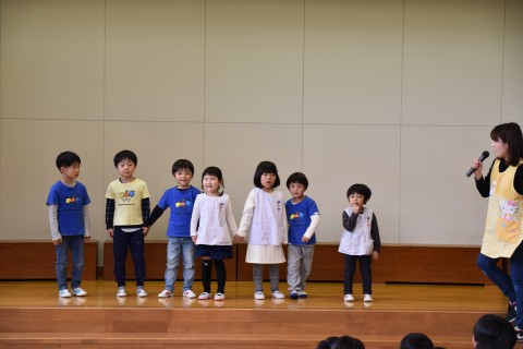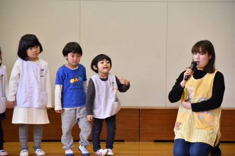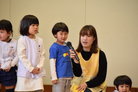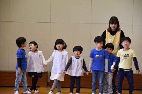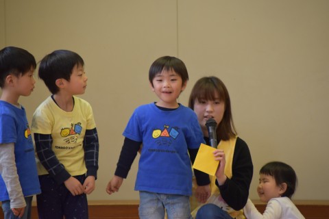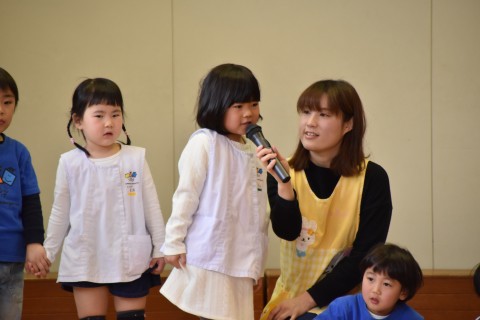 今月の誕生会は、ひよこ組さんと一緒に手遊びをしたり、先生たちのクイズゲームで楽しみましたよ。